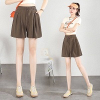 2025新款夏季新款薄款冰絲百褶裙褲A字五分褲 胖mm顯瘦垂感闊腿休閒短褲